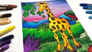 7DrawingandColoring Jerapah, Giraffe Halo semuanya! Di video kali ini adalah cara menggambar dan mewarnai gradasi dengan crayon oil pastel ...